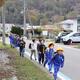 寒くても、登校班で歩いてくる子どもたち