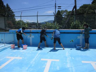 6月1日(木)に一回目のプール清掃(1,2,4年生)がありました。