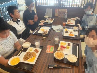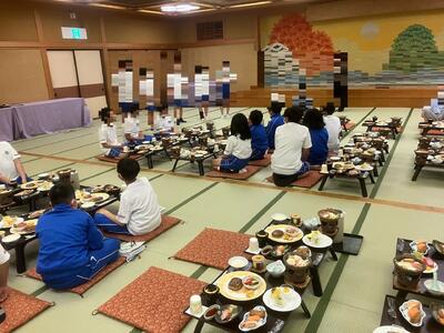 本日の朝食です。バイキングメニューで、子ども達はたくさんのメニューに笑みが広がりました。
