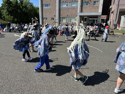 ここでは、子ども達が一生懸命に覚えた「獅子踊り」を、入居者・通所者の皆様に披露することができました。運動会練習をとおして、「獅子踊り保存会」の方々に教えていただいたことをしっかり引き継いでいる子ども達。たくさんの方々の前で堂々と発表することができました。郷土文化に誇りをもち、地域と優しくつながる子ども達に育っていくことでしょう。